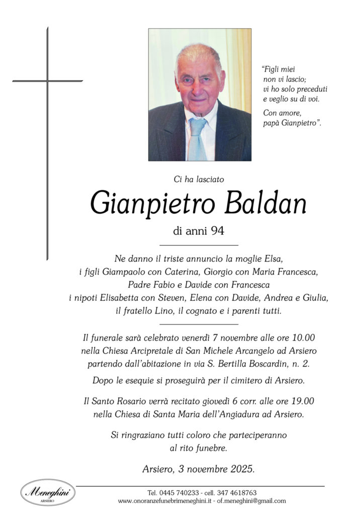 Necrologio Gianpietro Baldan